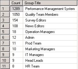 select COUNT(m.MemberId) as [Count], g.Title as [Group-Title]